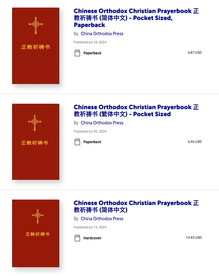 Dear friends, with the blessing of Fr. Dionysy of Hong Kong, the Chinese Orthodox Prayer Book from 2016 is available for purchase on Lulu.com. Please note that there are different versions: