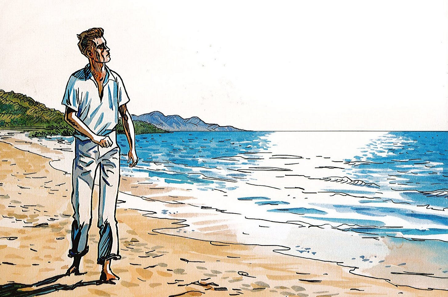 Adam ate the forbidden fruit and was driven from Paradise. He sat outside, weeping bitterly: